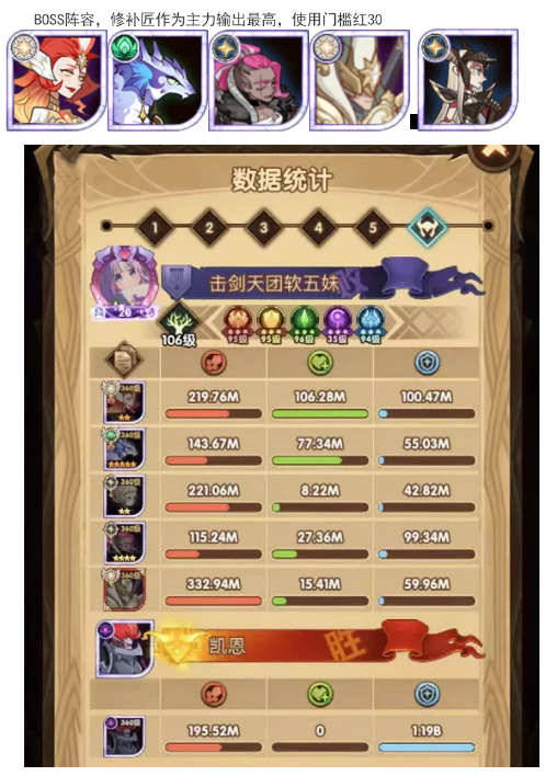 BOSS阵容,修补匠作为主力输出最高,使用门槛红30