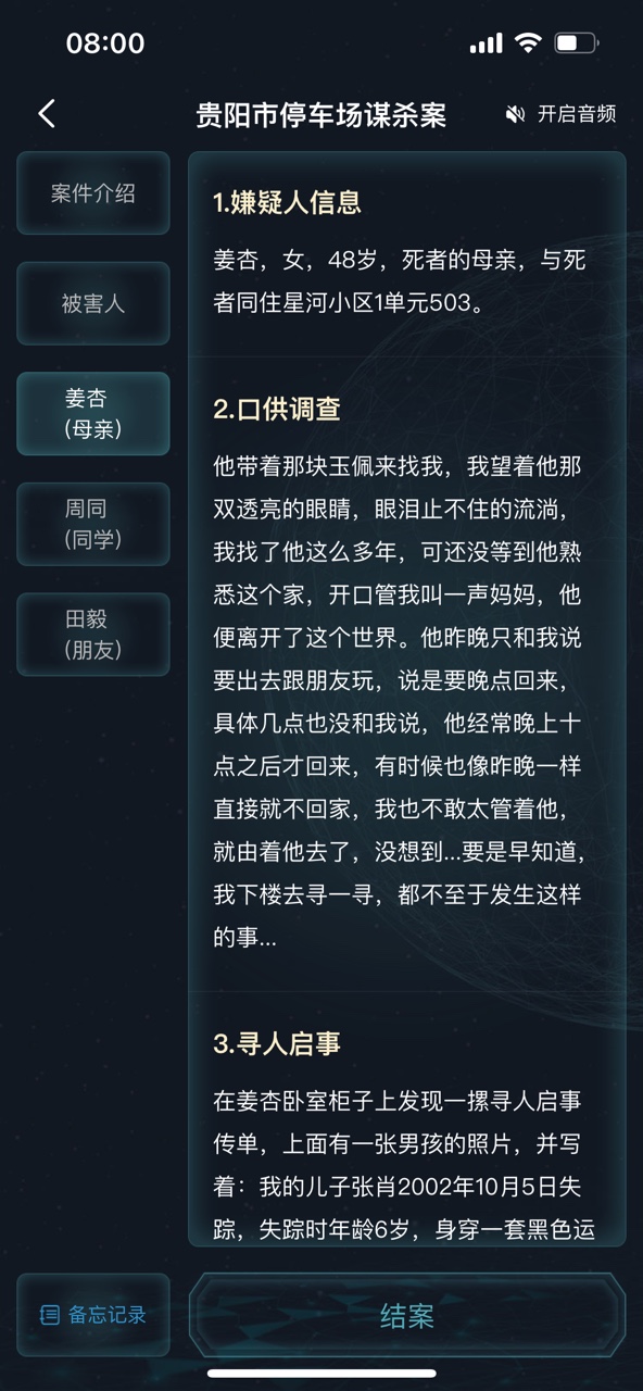 犯罪大师贵阳市停车场谋杀案答案解析