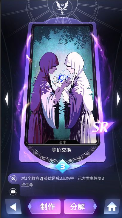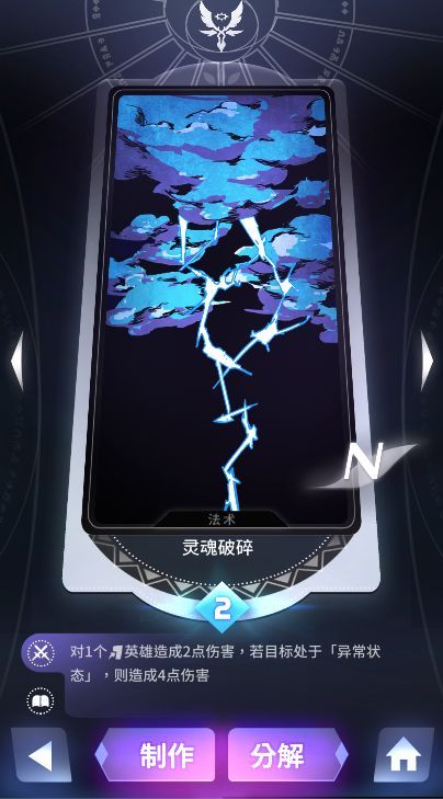 与异常状态配合进行战斗便是失乐园的拿手好戏。失乐园在前期的表现上相对弱势,需要尽量拖延时间,控制场面拖到中后期以攻击力、血量相对较高的卡牌压场是较为推荐的对战策略,此时优质的解场法术与AOE法术就是必不可少的了,配合失乐园的君主技能【使一个单位陷入异常状态】即可对敌方目标造成大量的伤害或者回复自身状态。比如下面这些,都是在组建卡组的过程中可以考虑的卡牌: