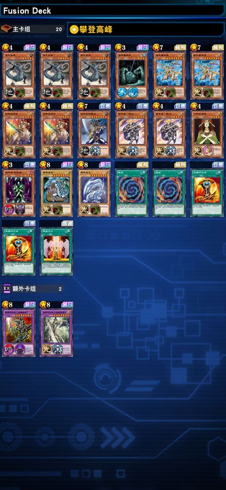 9张龙族卡(包含青眼白龙)+融合组件+攻击强化/卡组对策组件。可以选择2-3个破坏之证、巴斯特布雷达,3张充当万能融合素材的效果怪兽。