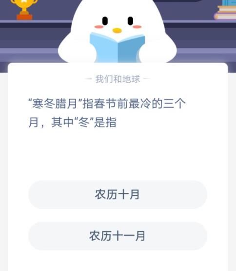 寒冬腊月指春节前最冷的三个月其中冬是指?蚂蚁庄园1月20日今日答案