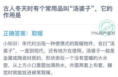 古人冬天时有个常用品叫“汤婆子”,它的作用是?