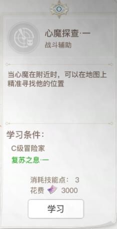 有很多冒险家反馈找不到或是抢不到心魔,如果你也遇到了类似的问题,小谕建议可以优先点出冒险手册技能树左边的心魔探查技能,这样就可以更快地找到心魔啦~