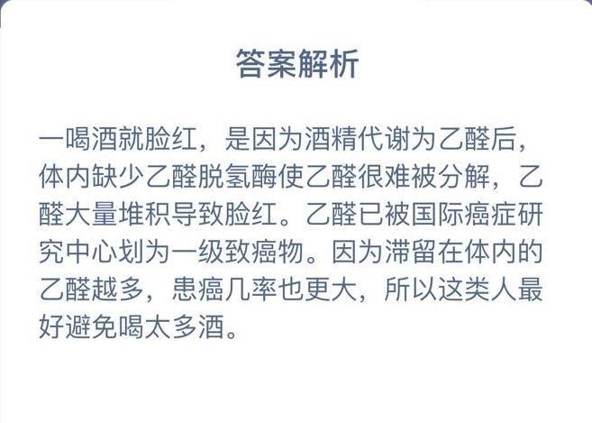 喝酒后容易脸红的人最好蚂蚁庄园1月19日答案