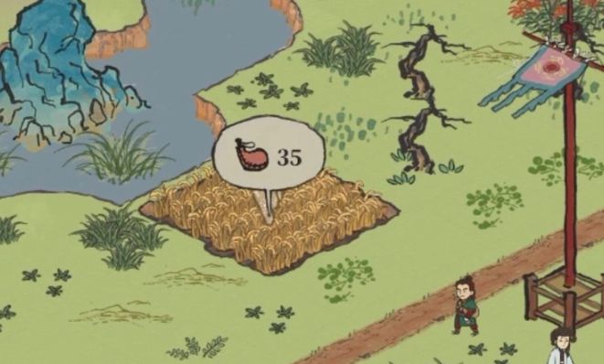 2、当我们找到稻田之后,需要花费35体力,收割稻田就能获得水稻了。