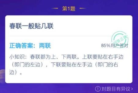 春联一般贴几联 蚂蚁庄园今日答案春联