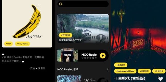 MOO音乐支持QQ音乐曲库,但是,它没有广告,而且不混乱。相对于大多数音乐播放器比较在乎个人音乐,MOO更偏重于音乐的推荐。