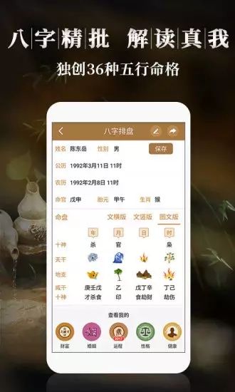 【子平八字算命—大师的工具,普通人的大师】子平八字算命软件是一款具有比较全面功能的中国传统术数类软件,主要包括八字算命、每天运势、阳宅玄空风水排盘、奇门遁甲、六爻排盘、周晚起名、姓名测试、风水择日、八字合婚、万年历等功能。可以作为专业人士的参考工具,普通人也可以自行使用测算。