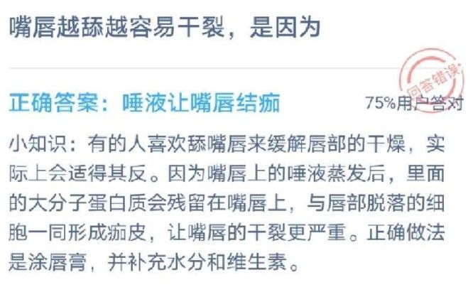 嘴唇越舔越干是怎么造成的 嘴唇越舔越干怎么办蚂蚁庄园