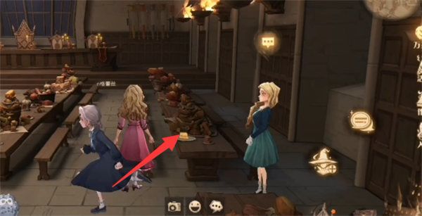 在这里需要去霍格沃茨礼堂,进入礼堂在里面的一个桌子上,直接点击图片中所指示的甜点即可获得拼图。