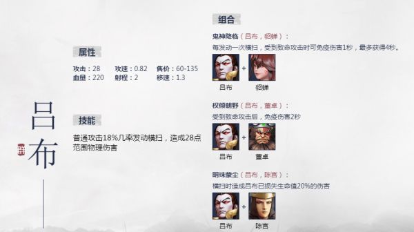 阵容特点:易组成,前中期吕布董卓很强。后期,呵呵,以上三大阵容都打不过。另外,别太培养陈宫,陈宫不强