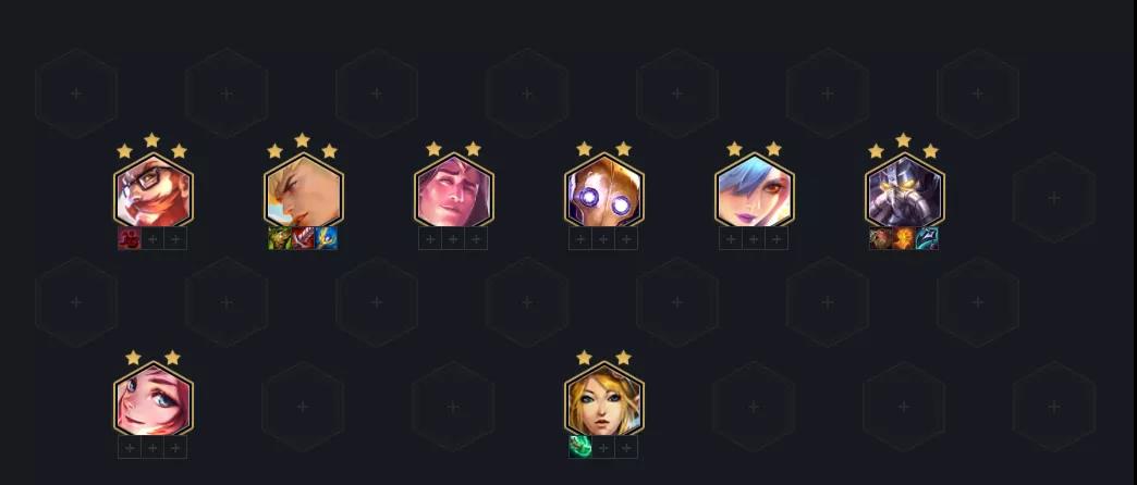 棋子构成:基兰、辛吉德、奥利安娜、、黑默丁格、迦娜、伊泽瑞尔、萨勒芬妮、杰斯