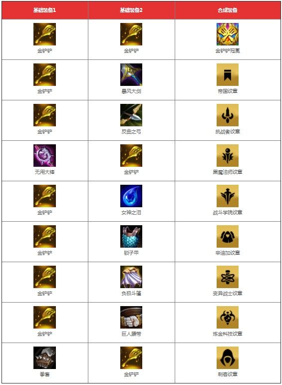 云顶之弈s6金铲铲合成表:s6赛季金铲铲合成装备一览