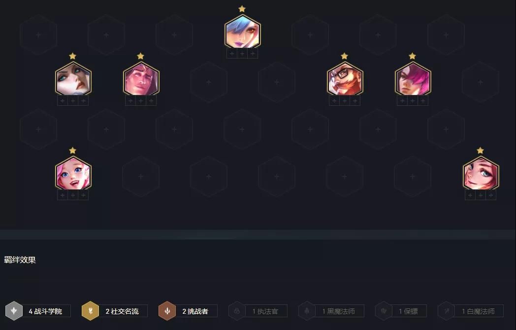 阵容羁绊:4学院 2名流 2白魔 2学者 2挑战