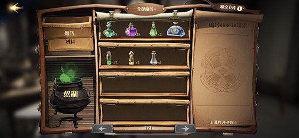 药水共享方法:在魔药页面-上滑打开仓库-拖动材料或者药水到仓库-舍友可查看和取出。