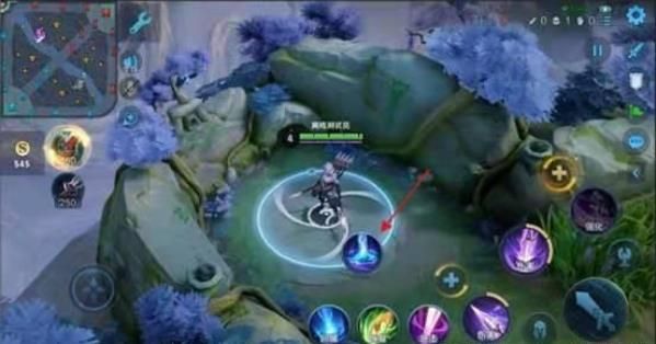 当在传送时间段内的时候,玩家控制的英雄站于原初法阵内,点击图中红色箭头指向的那个图标,即开启传送吟唱状态。吟唱持续3秒后,英雄即可传送至下路暴君龙坑口的固定位置。这个其实也好理解,就和回城类似,只是必须在这一个固定的位置才可以启动罢了。