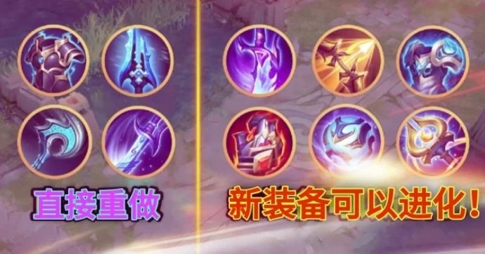 新赛季新增进化装备包括:原始遗珠+血魔之怒 =怒魂,蓄力可造成范围百分比伤害;原始遗珠+冰霜冲击 =凛冬,可提高自身移速;原始遗珠+逐日之弓=日渊,拥有多重攻击;原始遗珠+纯净苍穹=天穹,无视地形;原始遗珠+辉月 =月神,拥有霸体和法术吸血。改动装备包括:冰霜法杖更名凝冰之息,新增定身效果;冰霜长矛更名寒霜袭侵,新增缴械效果;冲击铠甲更名冰霜冲击,新增减少双速;贤者的庇护复活两次之后进化为原始遗珠。虽然新赛季进化装看起来很变态,但是S22赛季的节奏非常快,极少数会遇到拖到大后期的对局,也很少有玩家上来就出复活甲。