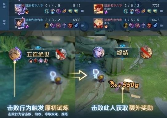 王者荣耀一直都存在英雄滚雪球的情况,很难克制,而原初试炼可以对滚雪球有所遏制。具体功能是这样的:玩家连杀、连续拿龙拿塔和助攻将会获得积分,积分对应着 “原初印记”。击杀带有“原初印记”的英雄时,获得额外经济奖励。当优势方经济远高于劣势方时,优势方所获得的终结奖励会受到一定比例的衰减。