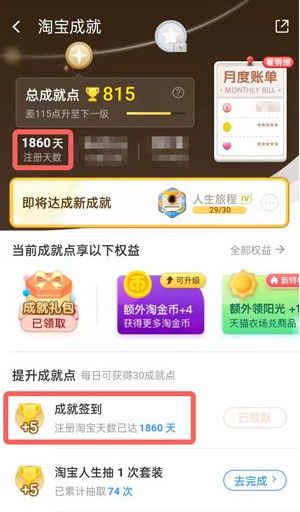 3、然后在淘宝人生的右上角点击【成就】进入;