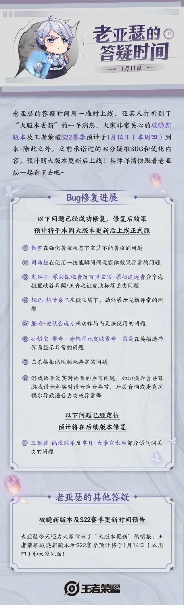 王者荣耀s22更新时间 1月14日几点更新s22赛季