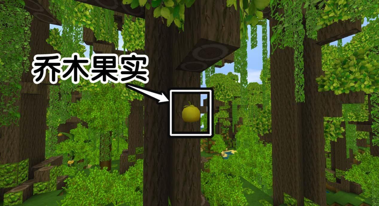 除了以上的用途,雨林乔木还有一个重要的作用:收获乔木果实,细心的冒险家们一定发现了,雨林乔木上会结出果实: