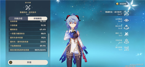 我们来看技能,普攻倍率不用看了,7级不如皇女5级,输出直接否定普攻,甘雨主打的特色是蓄力,7级的2段蓄力单体高达518%,群体也有326%这是真的高!尤其是这范围比可莉重击还大!!!所以这是核心技能,优先级no.1没得跑了