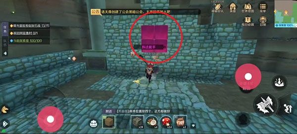 3、围绕着四周放置石块,在最后中间的四个洞必须用隐藏任务红水晶来填补,全部补完之后就会出现宝箱。