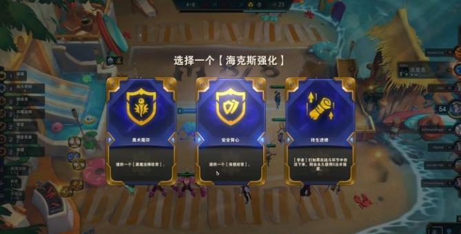 这把的D牌可以说是非常倒霉,在已经有一只永恩的情况下,慢慢D了三轮,钱D光了也没出二星永恩。4-6第三次海克斯强化,三个效果差不多,都是能拿但作用一般,这里由于我们缺少前排装备,所以拿个保镖转给宝石撑一点坦度。