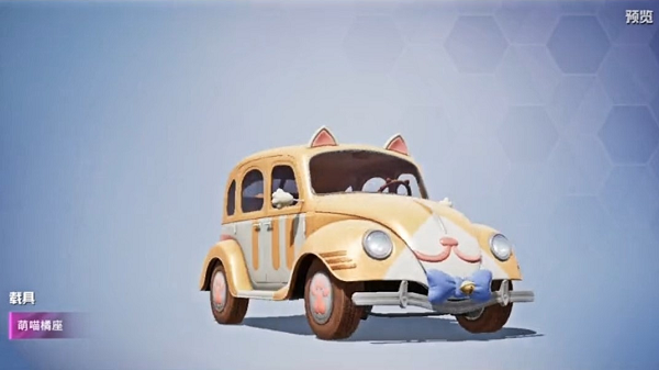 首先登场的第1个新载具名叫“萌猫橘座”,是吉普车的新车皮~这个新载具的造型与“柯基”的颜色有些相似,只不过出现了多种关于猫的元素设计,比如萌萌的猫耳朵、可爱的猫尾巴等细节。