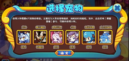 点击场景中的火焰,会出现选择宠物界面。