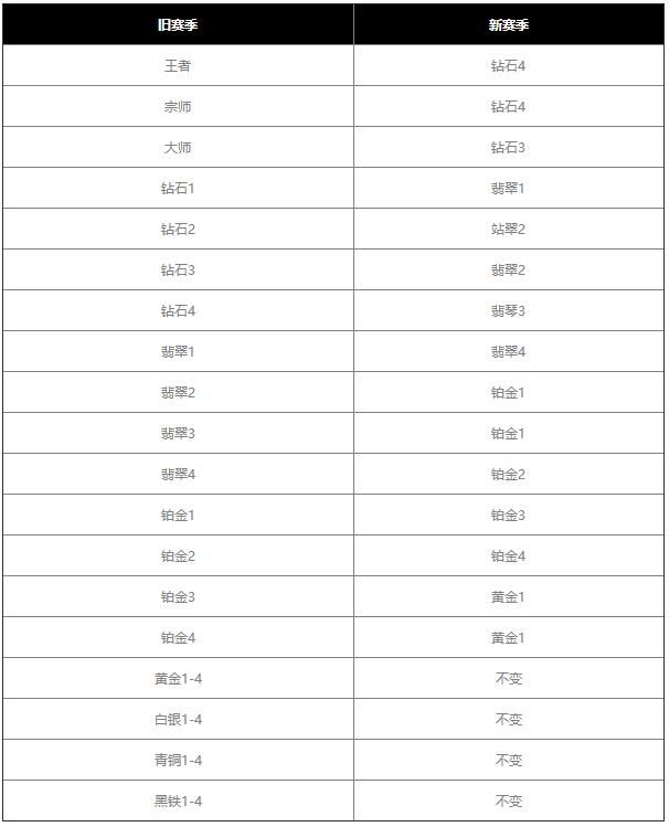 黑铁——黄金段位:新旧赛季直接继承,没有段位的调整;