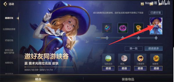 4、当邀请数量达到一定要求时还可以领取奖励,最后邀请6名好友即可获得免费的皮肤奖励。
