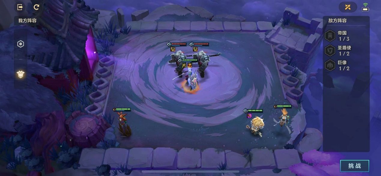 我们遇到了本阶段的最终boss痛苦魔女,敌方的队伍分别由 携带“朔极之矛和泪滴”的『2星卡萨丁』、『2星赛恩』、『1星盖伦』以及携带救赎的『3星痛苦魔女』组成的4圣盾使羁绊。