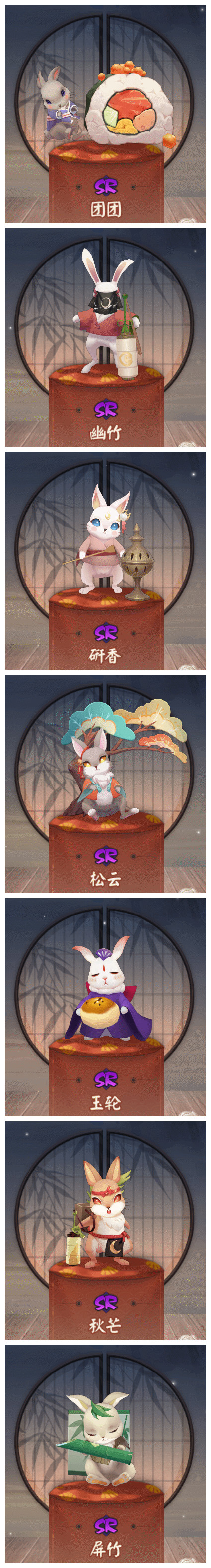 ※本次香道大会共14只兔子,共分为R阶/SR阶/SSR阶三种。