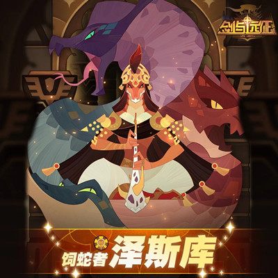 4、诅咒之焰:泽斯库引导蛇宠兹苏和塞图,向前方喷射诅咒之焰,对范围内的敌人造成3次一定百分比攻击力的伤害。被第3次伤害命中的敌人,会降低一定命中、暴击和暴击增幅,持续数秒,此效果不可叠加。