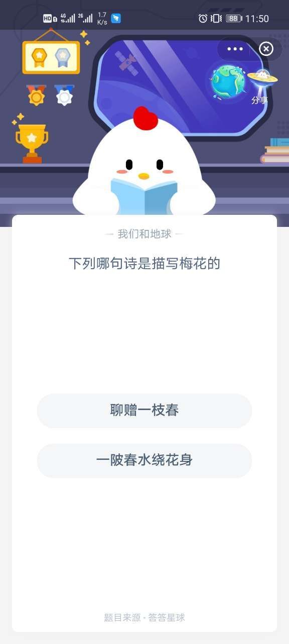 蚂蚁庄园聊赠一枝春是不是描写梅花的诗句?1月12日带来的问题是关于梅花的,爱梅者非常多,关于梅花的诗句也很多,那么在下方的问题中,大家知道哪一个才是正确描写梅花的诗句吗?本站小编也会给大家带来详细的答案。