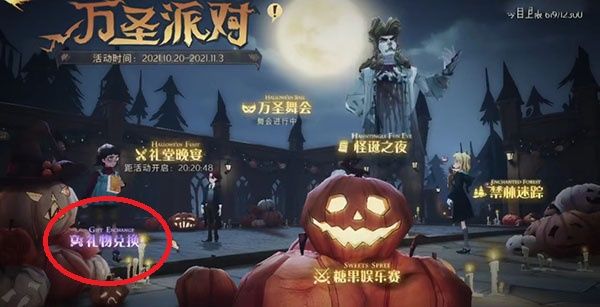有的玩家以为这样就完了,并不是的,然后返回在万圣派对页面左下角点击“礼物兑换”;