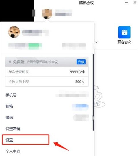 弹出个人腾讯会议页面,选择“设置”,并点击进入。