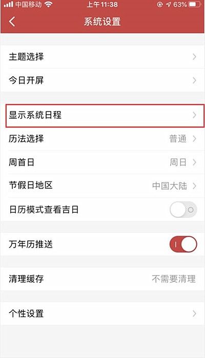 3.接着在系统设置中选选择显示系统日程。