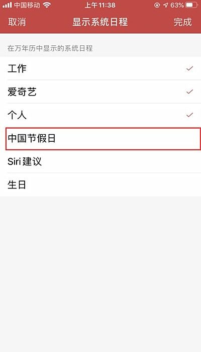 4.在显示系统日程中选择中国节假日即可。