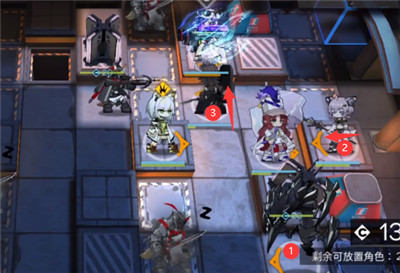 继续布置:单奶(向下)→ Mon3在遇到怪之后,释放凯尔希技能,打完怪后撤退。
