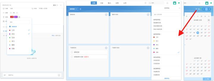 形态:任务分成今日任务跟所有任务,打开app后首页是今天要完成的任务,可设优先级。