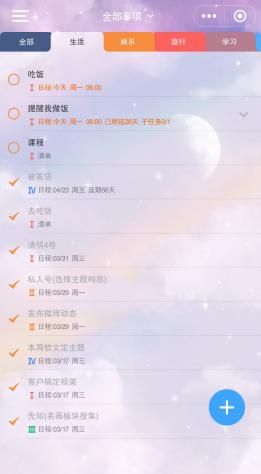 强大的时间管理,将事项主界面分为日程,清单,重复三部分。有确定时间的事情是日程,没安排时间的是清单,定期要做的事情是重复。完成了就打勾,还可填写打卡心得。看着满满的行程一个一个被打勾完成,真的很有成就感。