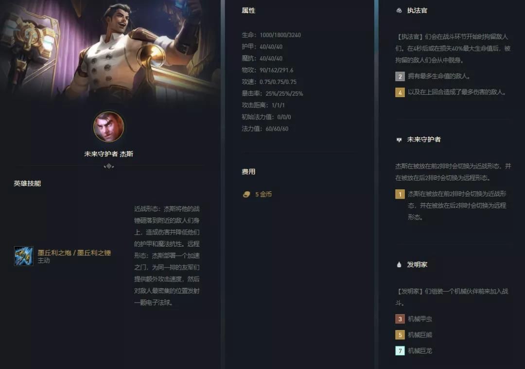 杰斯主要是阵容主要前排一定要放在阵容前2排,这样其输出与坦度两不耽误。