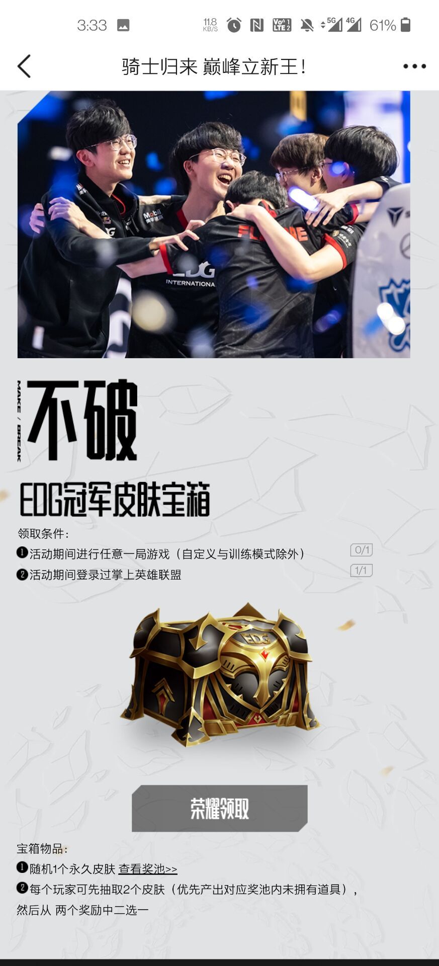 英雄联盟edg夺冠宝箱领取地址:edg夺冠宝箱2021领取入口