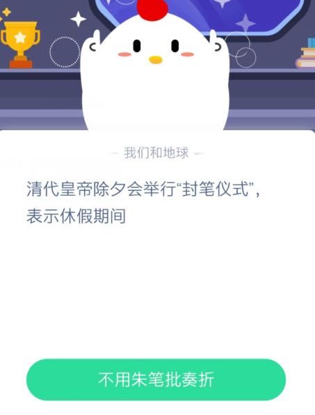 蚂蚁庄园清代皇帝除夕会举行封笔仪式,表示休假期间会不用朱笔批奏折还是不办公?这个问题就值得大家深思,对于皇帝所举办的封笔仪式大家都不是特别的了解,那么就让本站小编来带着大家一起来看一看。
