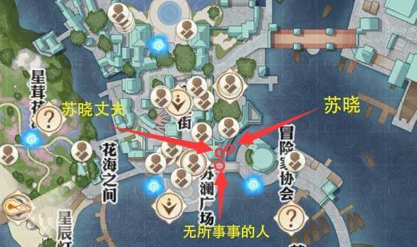 1、我们首先去找三个无所事事的人,他们的具体坐标位置就是(679.333),来到这个位置之后,和他们进行对话;