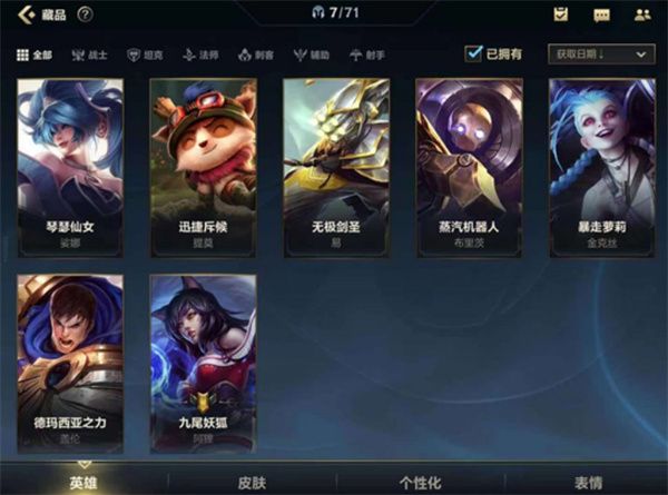 1级内瑟斯,2级狐狸,3级机器人,4级剑圣,5级艾希