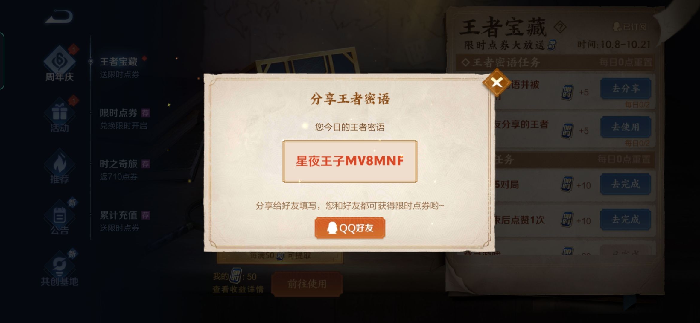王者荣耀密语是什么?10.9最新密语分享
