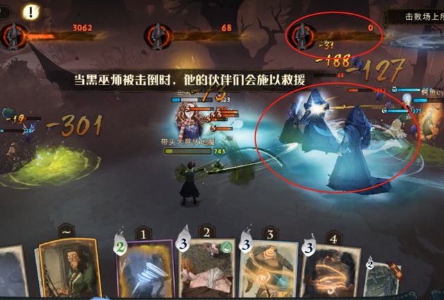 2、一个黑巫师倒地之后,其他黑巫师会迅速救起,建议将两个黑巫师一起击倒,然后用技能打断另外一个黑巫师,不让它救人。